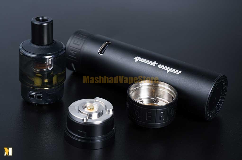 دستگاه پاد گیک ویپ مرو آیو GEEKVAPE MERO AIO دارای باتری 2100 میلی آمپر، ساختار فولادی ضدزنگ و سازگاری با کویل های گیک ویپ سری B می باشد.