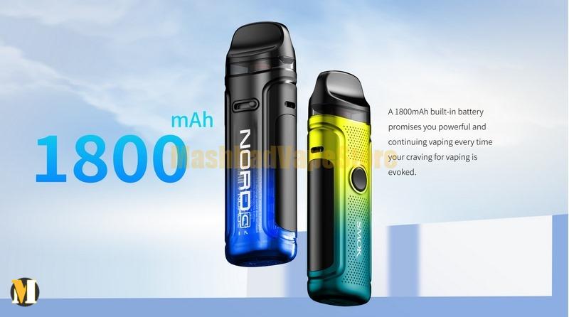 - ظرفیت باتری: ۱۸۰۰ میلیآمپر ساعت، که مدت زمان طولانیتری برای ویپینگ فراهم می کند.