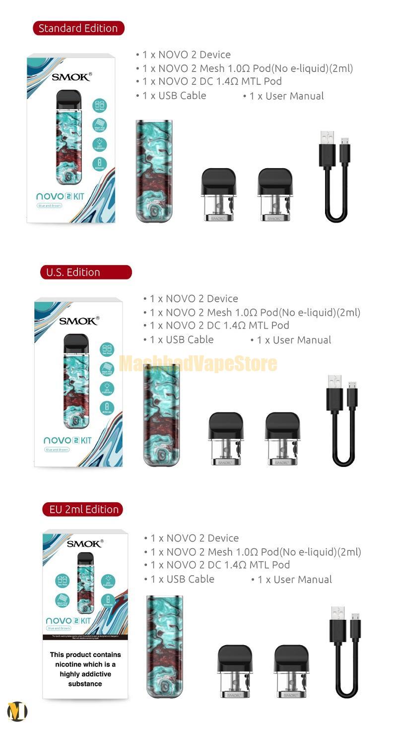 پادهای SMOK NOVO 2 با ظرفیت ۲ میلی لیتر قابل تعویض و شارژ مجدد با اتمسفرهای داخلی می باشند. مقاومت های مختلف کویل از ۰.۸ تا ۱.۵ در دسترس هستند.