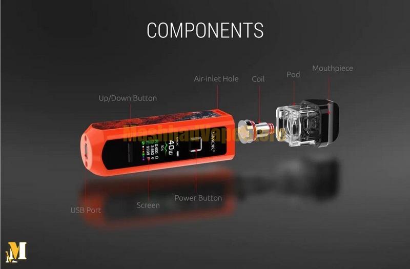 مخزن پاد ماد Smok RPM 40 Pod Mod می تواند بیش از ۴ میلی لیتر ایجوس یا سالت نیکوتین را در خود نگه دارد. شاسی این دستگاه از آلیاژ روی بادوام و مواد سبک وزن ساخته شده است. چیپست هوشمند دستگاه گرمایش فوق سریعی را فراهم می کند. SMOK RPM40 از کویل های متعددی پشتیبانی می کند.