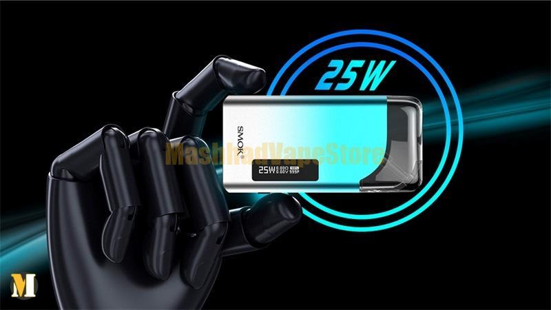 در داخل بدنه پاد تینر اسموک یک باتری قابل شارژ با ظرفیت 750mAh وجود دارد که شارژ سریع Type-C را پشتیبانی می کند. یک نمایشگر OLED با ابعاد مناسب ۰.۶۹ اینچ در جلوی کیت Thiner قابل مشاهده است و رابط صفحه می تواند تمامی داده ها را به طور واضح نشان دهد. دارای یک دکمه در کناره برای تنظیم واتاژ تا ۲۵ وات.