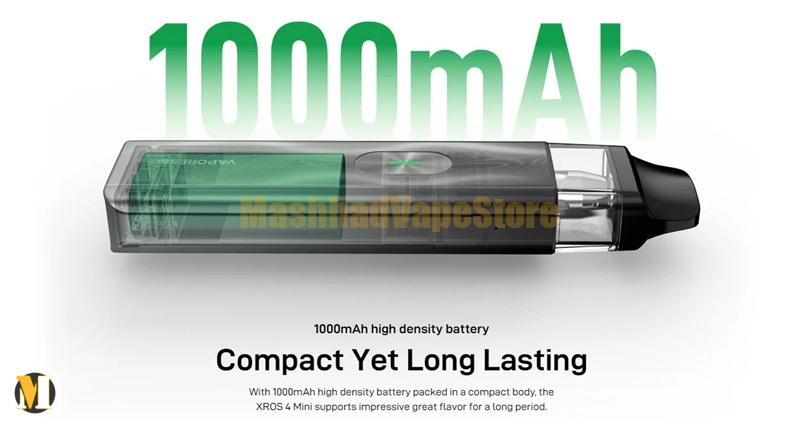 XROS 4 Mini با باتری داخلی ۱۰۰۰ میلیآمپری، امکان استفاده طولانیمدت را بدون نیاز به شارژ مکرر فراهم میکند.