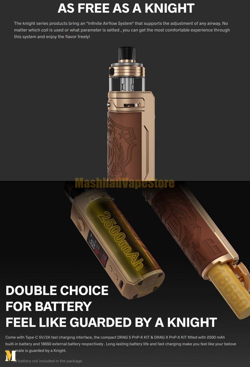 دستگاه پاد ماد VOOPOO DRAG S PNP X دارای یک باتری داخلی ۲۵۰۰ میلی آمپر ساعتی است که از طریق کابل شارژ نوع c قابل شارژ است. علاوه بر برق تمام روز، این کیت دارای محدوده توان قابل تنظیم ۵ تا ۶۰ وات است تا فرصتی دیگر برای شخصیسازی تجربه بخارپزی خود داشته باشید. تراشه GENE.TT در کمتر از ۱ ثانیه مشتعل می شود و به محض اینکه دستگاه خود را مشتعل می کنید طعمی عملاً آنی را برای شما فراهم می کند.