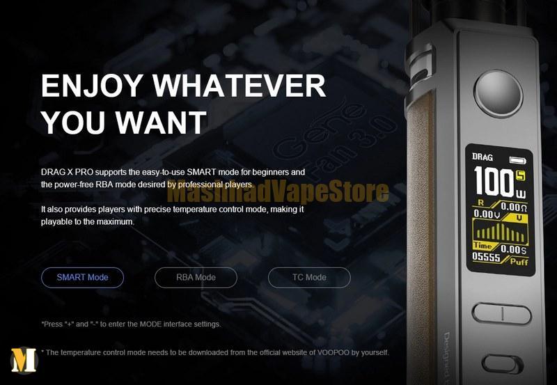 این کیت ویپ چشمگیر به سبک غلاف VooPoo به همان اندازه که از نظر زیبایی شناسی دلپذیر است و استفاده از آن راضی کننده است. Drag X Pro با دارا بودن سه حالت بخار از جمله حالت هوشمند، حالت وات متغیر (حالت RBA) و حالت کنترل دما، دستگاهی عالی برای تمام ویپرهای مستقیم به ریه (DTL) است.